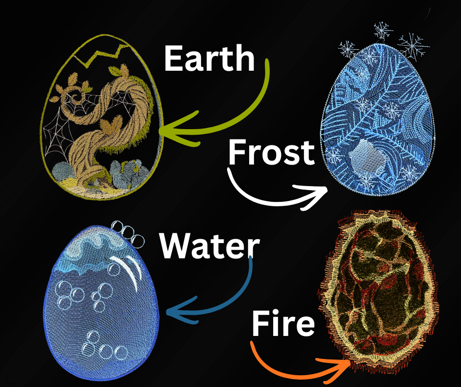 Dragon Eggs Embroidery Design Bundle (Fire, Water, Frost, Earth)