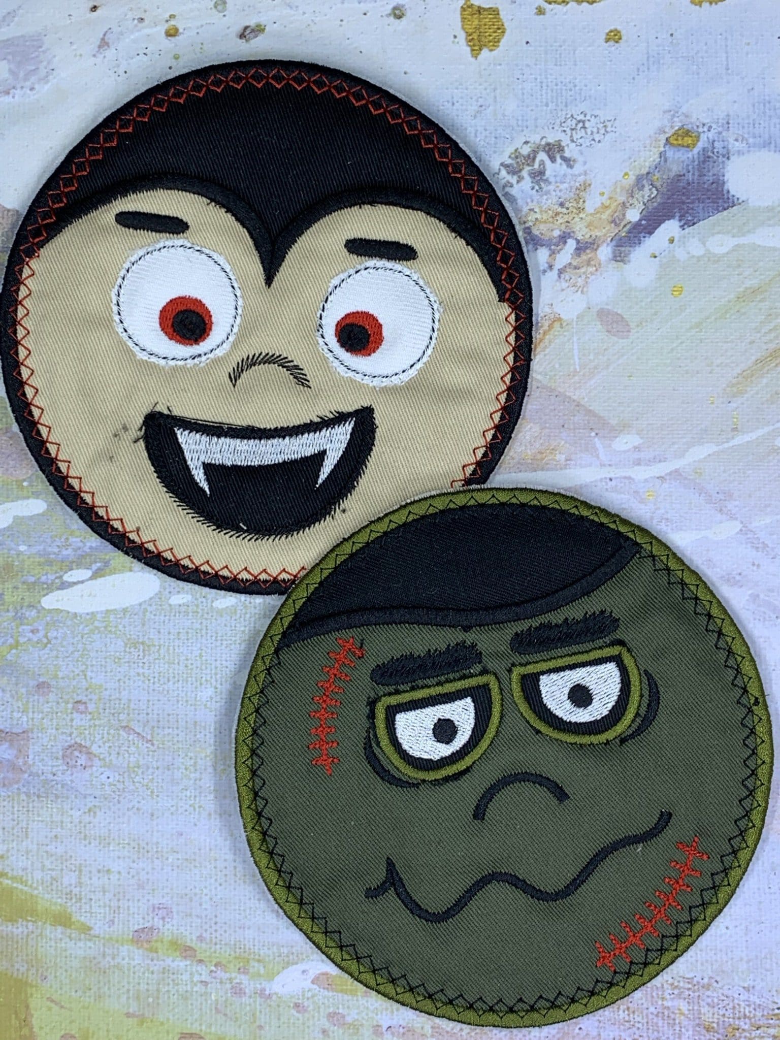 Jack, Drac, and Frankie are super cute and quick to stitch! All 3 designs are made for the 5×7 hoop and are super fun to stitch out. Each design has PDF instructions that will guide you through each step of creating each design! All 3 mug rugs in this Halloween Trio of characters are satin stitch finish, so all three mug rugs have the same style finish. Check out the video below to see the steps involved in stitching a Halloween mug rug designs bundle with a satin stitch finish – even though the designs are different, the steps are basically the same.
