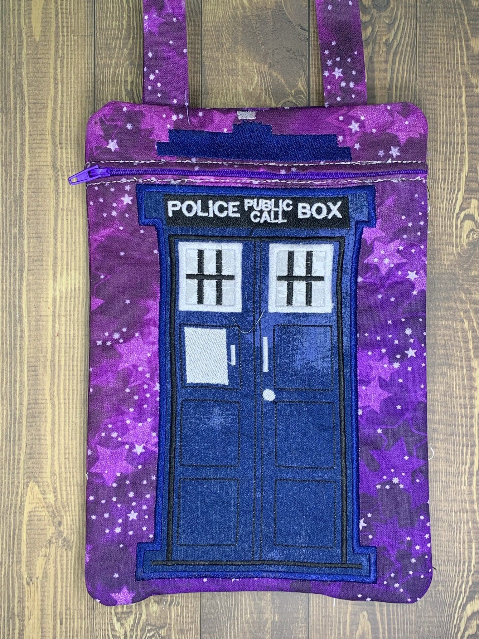 Check out this awesome police box in the hoop zipper bag!! Perfect size for carrying your phone and wallet, or just about anything!